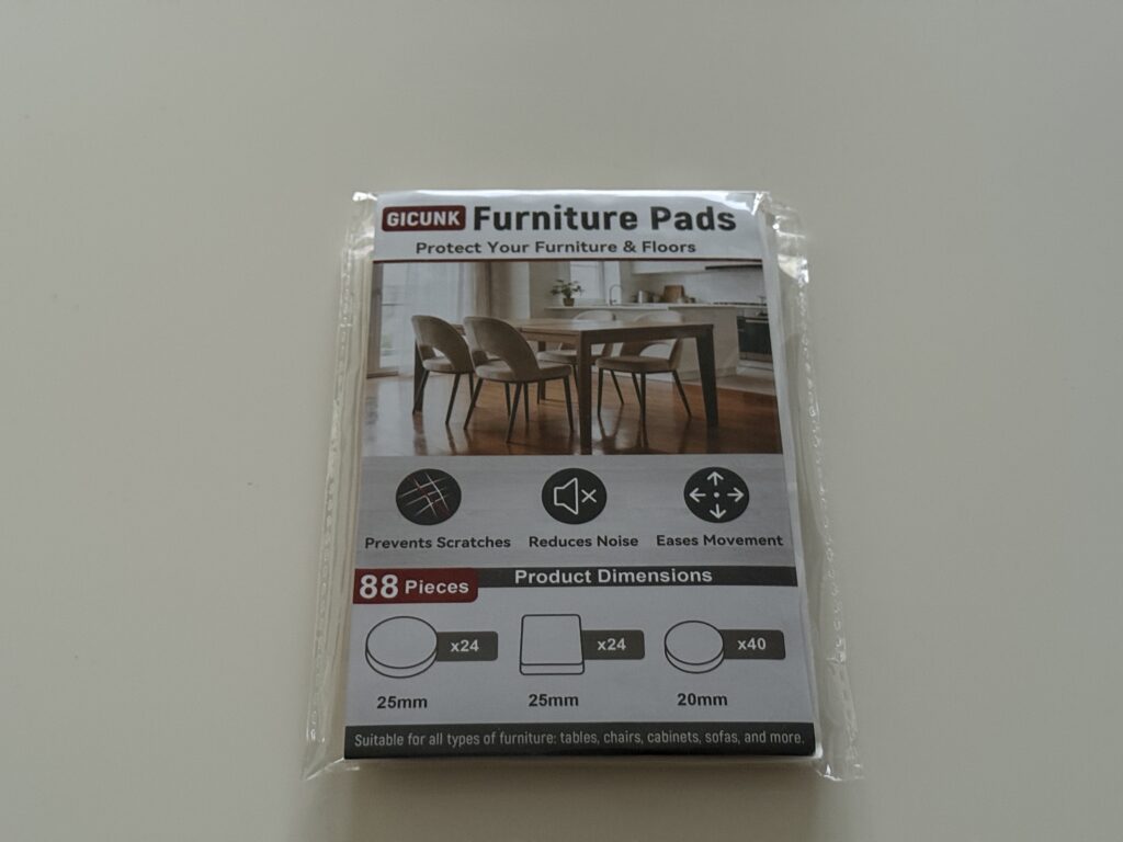 Ich habe die GICUNK Filzgleiter (88 Stück, 3 mm, beige) im Rahmen von Amazon Vine getestet und zunächst unter einem Stuhl angebracht.